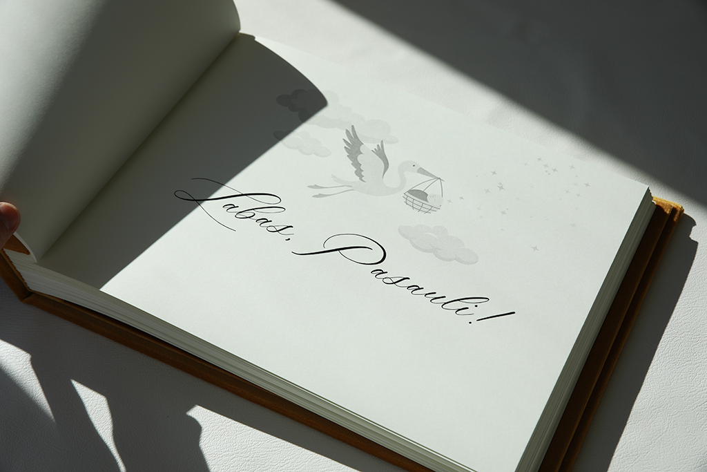 Ši minimalistinė ir estetiška knyga yra ne tik praktiška, bet ir maloni akiai, su paprastais ir aiškiais įrašų lapais, leidžiančiais fiksuoti svarbiausius įvykius, pirmuosius žingsnius, pirmąjį žodį, svorį, ūgį ir kitus mažylio vystymosi aspektus.